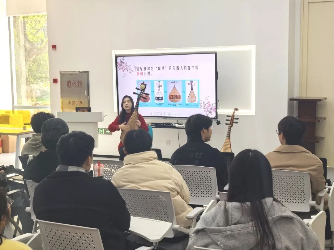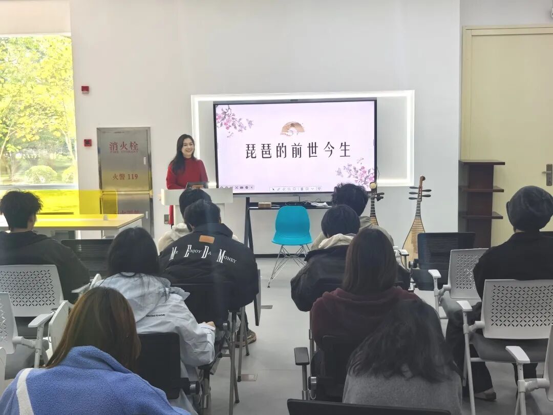 11月18日下午,一场浸润着中华优秀传统文化底蕴的讲座在校园内温情开讲。国家级非物质文化遗产项目“琵琶艺术(浦东派)”代表性传承人王睿琳女士应邀而来,为学子们带来了一场关于浦东派琵琶的文化盛宴。