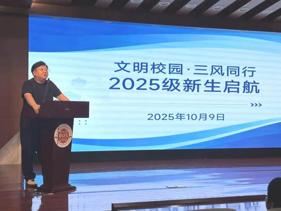 最后,学院副院长金波对2025级新生提出了期望和要求,期望新生向朋辈学习,树立目标,在大学生涯中有所收获和成长,并寄语2025级新生:“希望同学们以此次大会为起点,在未来的大学生活中做到知行合一,将‘三风’建设内化于心、外化于行,共同营造文明、和谐、奋进的校园文化氛围。”