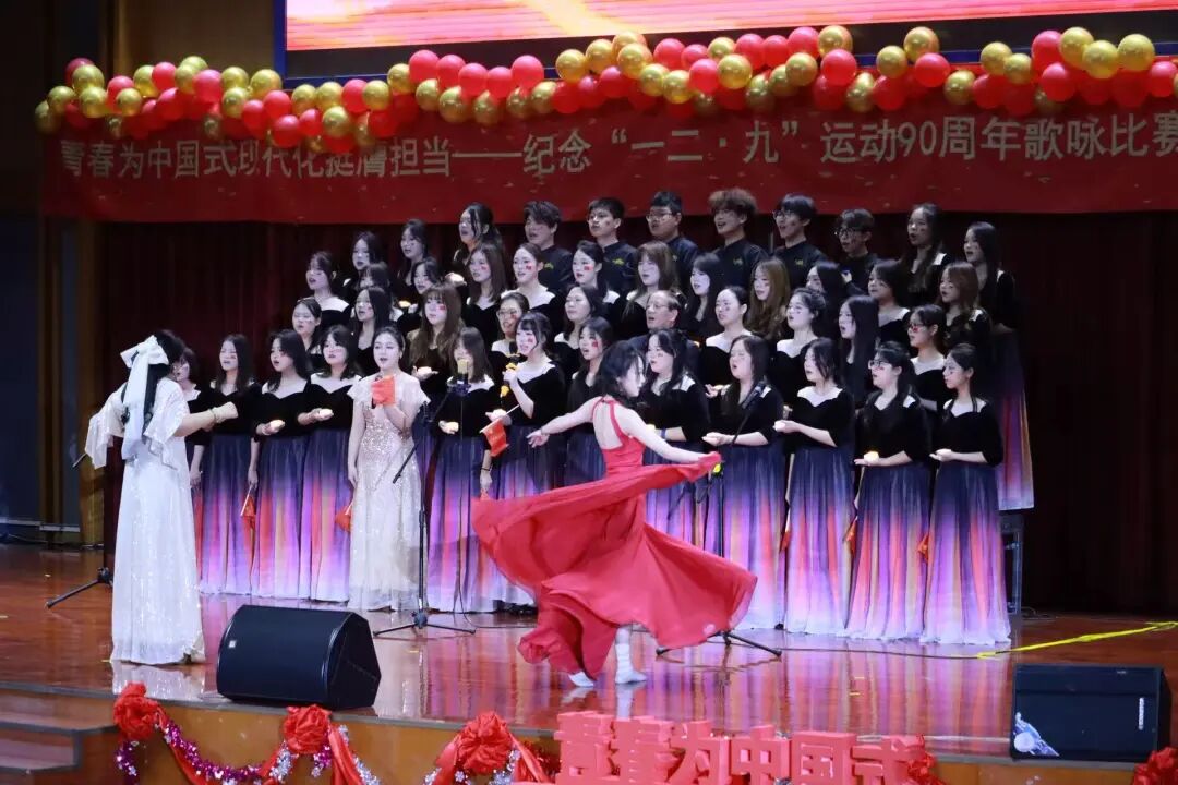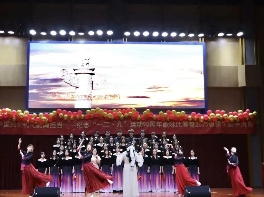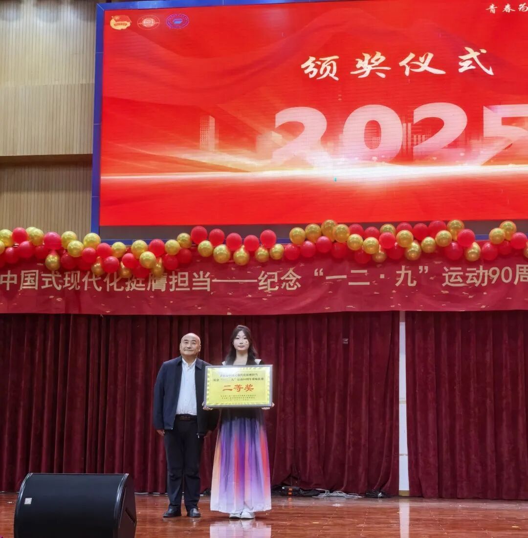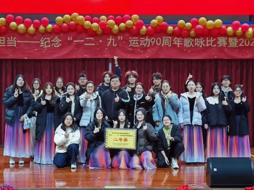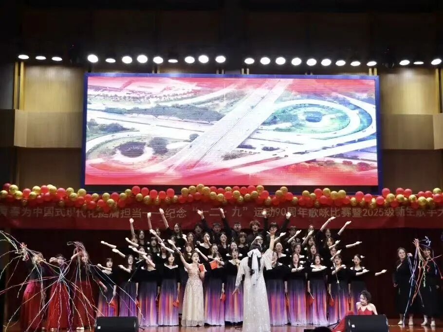 我院代表队在学校刚刚落幕的“青春为中国式现代化挺鹰担当,纪念一二·九运动90周年歌咏比赛暨2025级新生歌手大赛”中,演唱《我爱你,中国》与《歌唱祖国》两首歌曲荣获大赛二等奖的优异成绩!同时,我院2025级国际商务专业蔡瀚镪同学凭借其精湛的演唱技艺和感人至深的情感表达,荣获学校新生歌手大赛个人组一等奖!