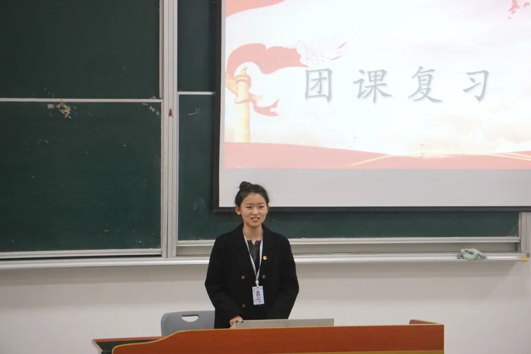 活动前期,分团委副书记广泛收集同学们在团课复习中遇到的困惑,梳理出共青团的性质(政治性、先进性、群众性)、“三会两制一课”制度的具体内容、团史重大事件(历次代表大会时间、地点、主要成果)、团旗、团徽、团员证的规范知识、团员条件与离团规定、“两个维护”“两个确立”“四个意识”“四个自信”等重要政治概念、一二·九运动与五四运动的历史意义等高频考点和易错知识点,精心制作了条理清晰、重点突出的复习资料和PPT。