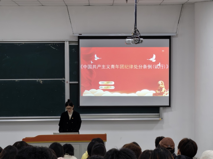 为深入贯彻全面从严管治团要求,切实加强团员纪律意识观念。我院于2025年11月12日在八号楼一楼及七号楼二楼阶梯教室分别召开2024级、2025级全体共青团员《中国共产主义青年团纪律处分条例》专题学习会议。