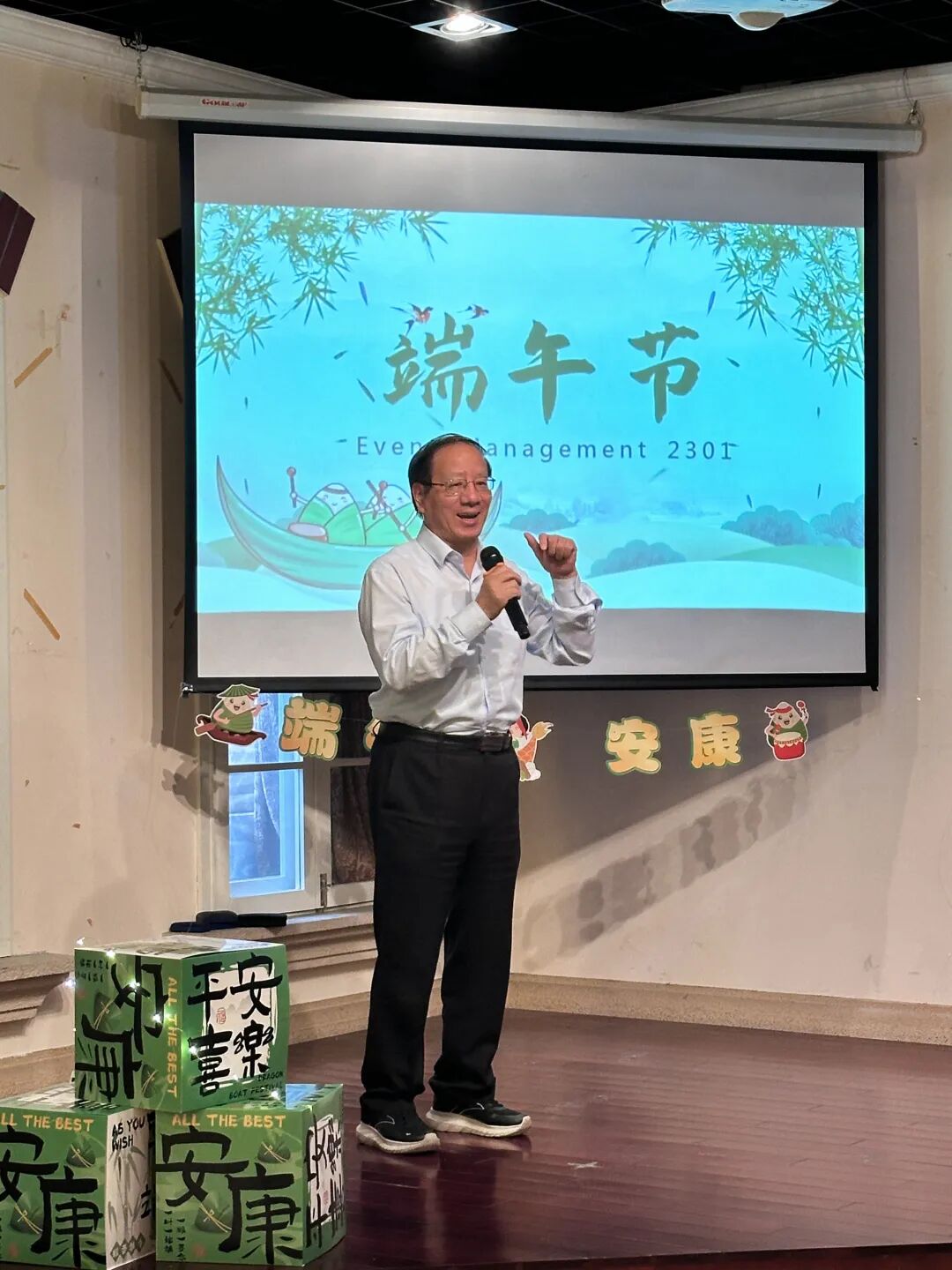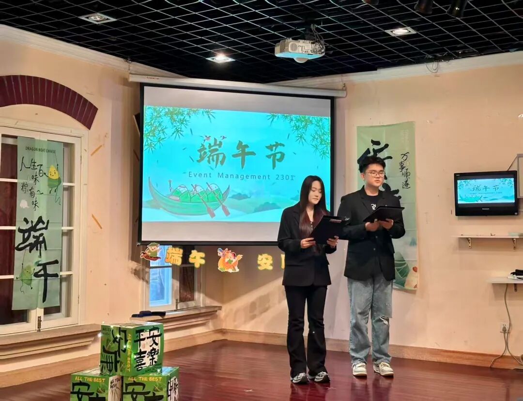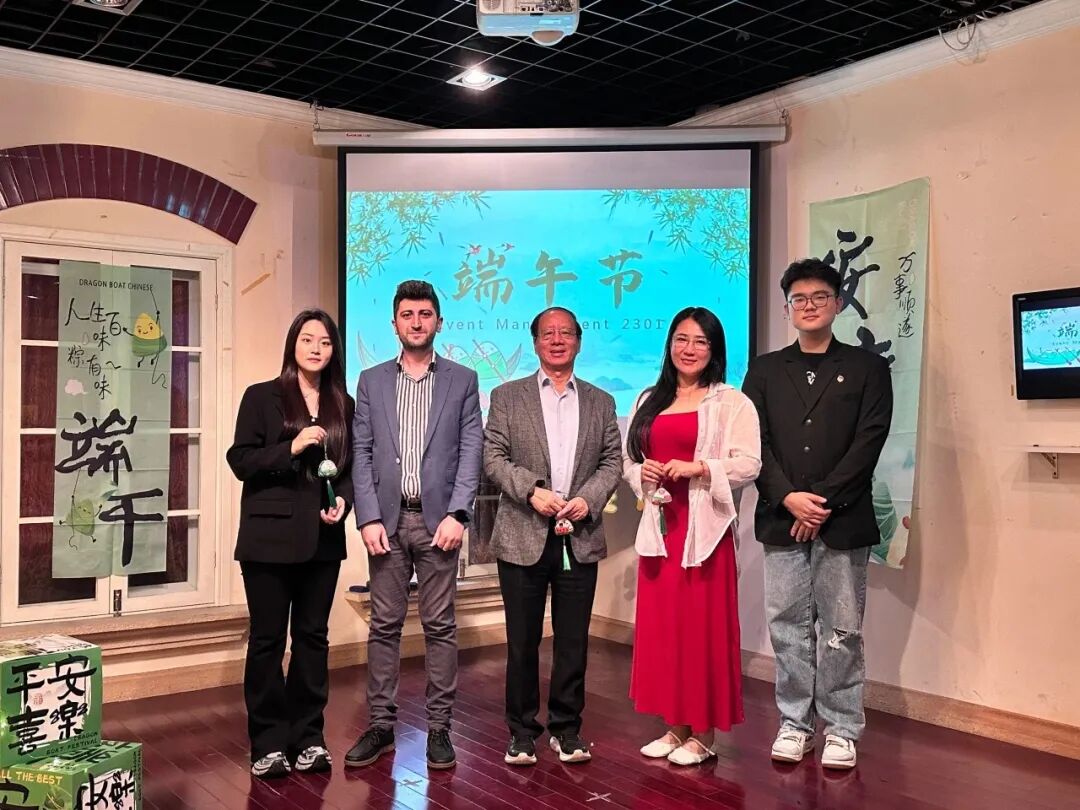 为弘扬中华优秀传统文化,深化会展专业实践教学,近期,上海工商外国语职业学院商学院23级会展策划与管理(中澳合作)专业以端午节为契机,精心策划了一场融合文化传承、专业实训与国际交流的主题活动。副校长、商学院院长姚大伟教授,商学院副院长于丽艳,会展专业教研室迟亮亮老师、外教Davit及会展策划与管理(中澳合作)2301班全体学生参加了此次活动。