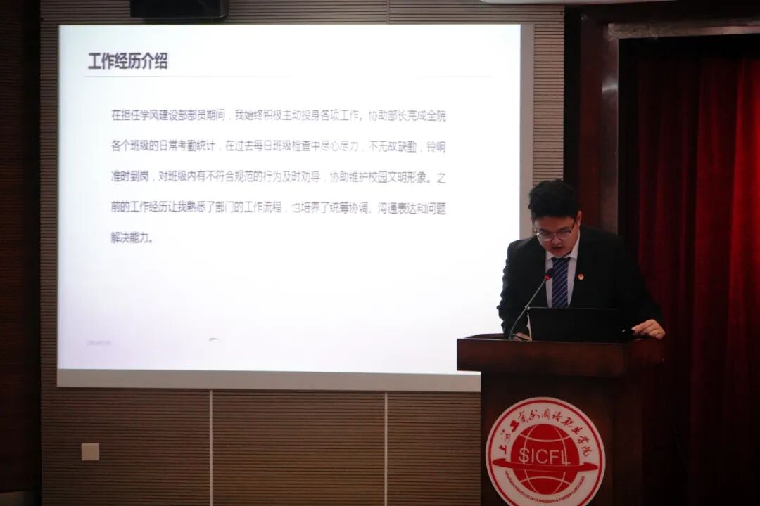 在竞选舞台上,各位候选人意气风发,尽展才华。他们慷慨陈词,阐述对未来工作的构想。一字一句,都饱含着对学生会工作的无限热爱与深切期望。面对老师和骨干们的提问他们从容不迫,各抒己见,赢得了老师肯定和在场同学的称赞。我们看到了新鲜血液的活力,也看到了学院未来发展的蓬勃希望。