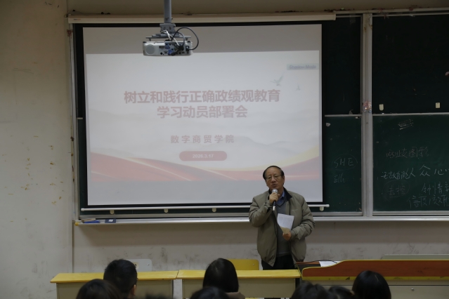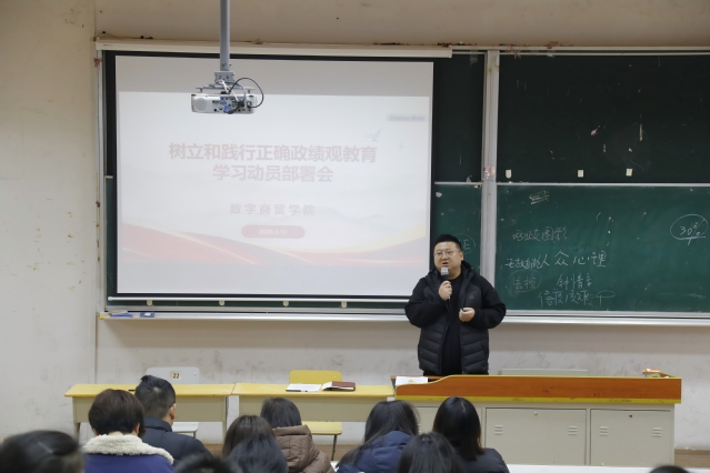 为深入推进正确政绩观学习教育走深走实,强化党员干部责任担当,筑牢师德师风建设根基,本周二中午,数字商贸学院党总支召开树立和践行正确政绩观学习教育动员部署会。校党委副书记、副校长姚大伟、王云玺常务副院长出席会议,学院全体党员参加会议,党总支副书记金波主持会议。
